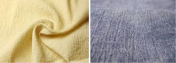 일본인들이 보통 “지지미(縮み)”라고 부르는 것이 크레이프 직물인데 특히 면으로 만들 때는 표백을 필수적으로 하며 이때 강연사가 축융돼 원 상태로 돌아가려는 힘이 강하게 작동해 요철이 뚜렷한 스트라이프 직물이 되는 것이다.