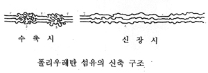 아주 오래전 합성섬유를 소개하면서 폴리우레탄 섬유를 간단히 소개한 바 있다. 폴리우레탄 섬유(polyurethane fiber)는 탄성 섬유(elastic fiber)라고도 하며 폴리우레탄 함량 85% 이상을 함유하는 고분자 화합물을 말한다. 1937년 독일에서 폴리우레탄 수지가 개발 됐으나 합성 섬유로써는 2차 세계 대전 중에 공업화됐다.