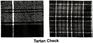 여하간에 가문 별로 만들어진 타탄 체크 무늬는 가령 고든 무늬는 고든 가문의 문양이며 스튜어트 체크 무늬는 스튜어트 가문의 문양을 나타낸다. 이러한 타탄 체크는 색사는 물로 문양의 크기까지도 정해져 있다. 용도는 병사들이 입는 킬트라고 하는 스커트, 어깨에 걸치는 플래드, 모자 등이다. 영국의 버버리나 아쿠아스쿠텀, 닥스 등도 자기네 고유 타탄 문양을 사용하고 있다.