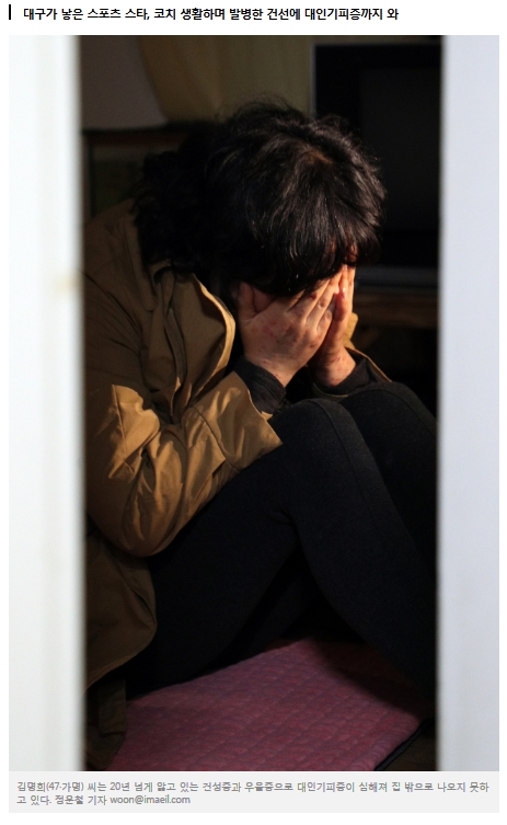 난치성 피부질환인 '건선증'과 우울증에 시달리는 김명희(47·가명) 씨는 왕년 지역 스포츠 스타로 이름을 날렸던 인물이다. 김 씨의 책장에 꽂혀 있는 파일첩에는'大邱에 첫 金 안겨','5관왕', '한국 신기록'등 이 적힌 신문기사와 상장 150장이 빼곡히 들어 있었다. 그는 33년 전 매일신문에 실린 현역시절 사진을 쓰다듬으며 하염엾이 눈물을 흘렸다.