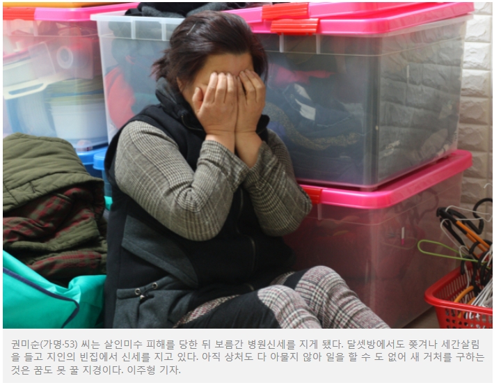 병원에 실려간 권 씨는 보름간 입원 후 퇴원했지만 현재 신경안정제를 먹어도 잠을 못 잘 정도로 큰 트라우마에 시달리고 있다. 길을 가다가 A씨와 비슷한 남자를 보기만 해도 소리를 지르거나 오금이 저린다.