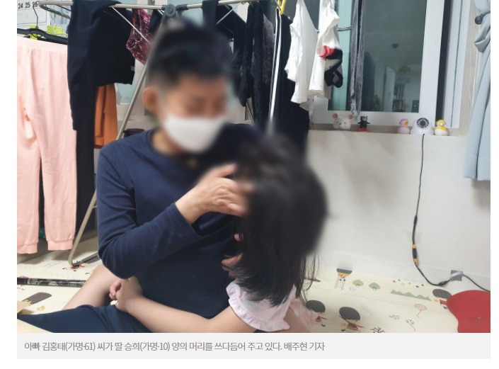 원룸 바닥에 앉은 아빠 김홍태(가명·61) 씨가 딸 승희(가명·10) 양에게 손으로 걸레질 흉내를 낸다. 몇 번 가르쳤지만 아직 어린 딸의 솜씨는 영 서툴다. 승희는 아빠의 손짓을 따라 하다 금세 방으로 쪼르르 내뺀다. 그런 딸이 귀엽지만 이내 마음이 먹먹해진다. 김 씨는 폐암 4기다. 뇌경색과 뇌출혈까지 겹쳐 그는 언제 어떻게 세상을 떠날지 모른다. 이후에 딸을 돌봐줄 이가 아무도 없다. 김 씨가 딸에게 할 수 있는 일이라곤 집안일을 하는 법을 차근차근 알려주는 것뿐이다.